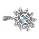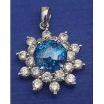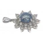 A rare BLUE DIAMOND pendant set in a floral bed of twenty white diamonds set on a 14K white gold mount. Blue diamonds approx 1.5 carat, twenty diamonds x 0.05 carat.
