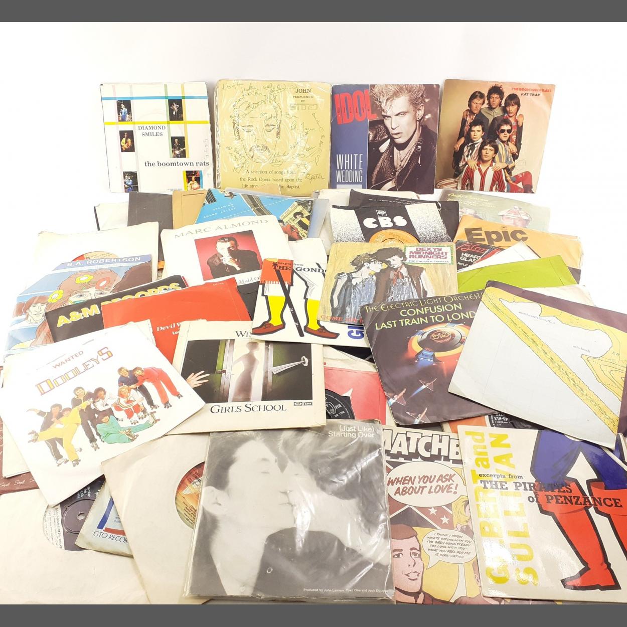 A great selection of 45rpm singles mainly from 1980s. Some disco, rock and pop. To include John Lennon, Ultravox, Blondie, the Monkees, Jennifer Rush, Queen, Wizzard, ELO and much much else. Over 80 individual pieces.