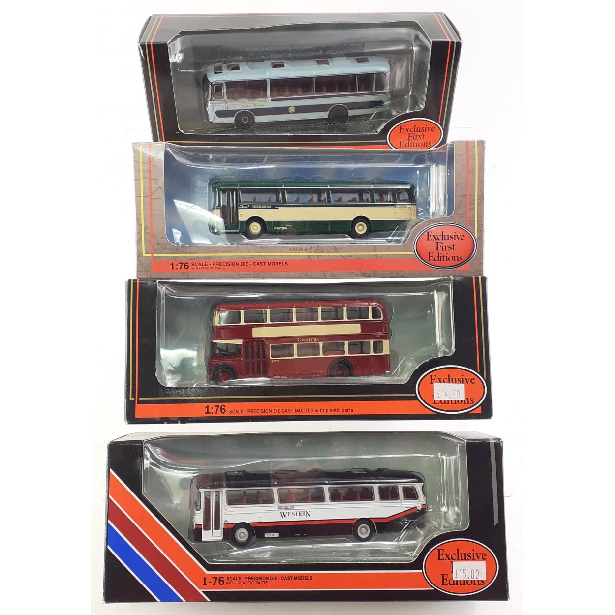 Four EFE Exclusive First editions Diecast 1:76 Buses of a Scottish theme. Includes 22713, 22715, 22704, 13914. All boxed in good condition.