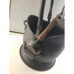 Collection of fireside items to include tri-folding metal firescreen and black metal coal scuttle and shovel