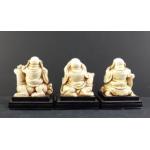 Collection of 3 resin Buddhas on plinths to include "Hear no evil", "See no evil" and "Speak no evil". All approx 9.5cm tall