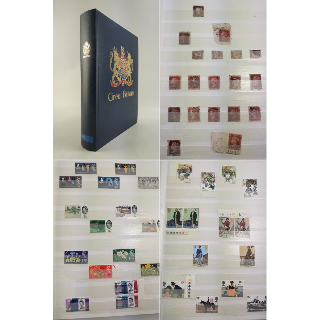 STAMPS. A quality stamp album / stock book. Contains Penny Reds, Penny Blues and other Victorian and Edwardian, George V seahorses Used. Also a good selection of Elizabeth II including multiple pages of unused commemoratives.