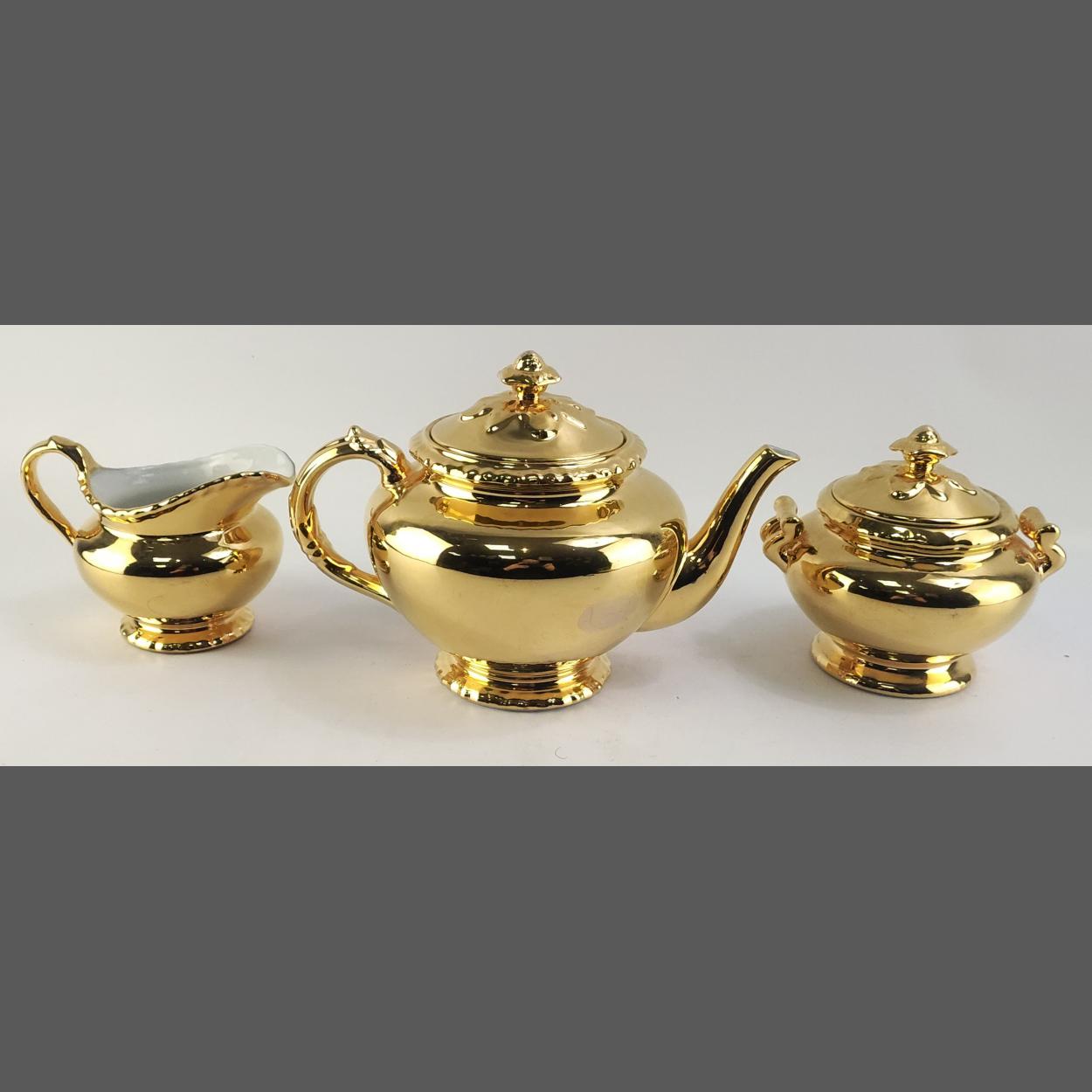 ROYAL WORCESTER. Gold lustre ceramic Tea Pot, Sugar and Cream. All three pieces in lovely clean undamaged condition.