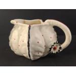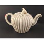 Rare BURLEIGH WARE cactus design floral teapot, sugar and cream set. A very striking unusual set in good condition. Staining internally from use but a really unusual and attractive service.
