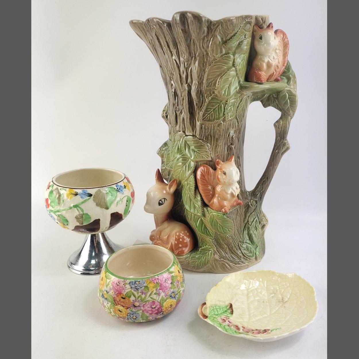 WITHERENSEA Fauna water jug 28cm tall and in lovely undamaged condition. With three other decorative ceramic pieces.