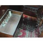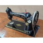 SINGER Sewing Machine. Treadle version in cabinet with accessories and original booklet. Note the cabinet externally does have wear but would be an easy light restoration.