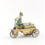 Made in DRGM Germany penny clockwork toy. Child on cart. Does wind but the spring sticks. A lovely little penny toy.