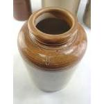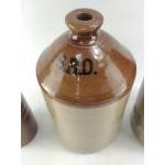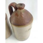 Collection of stoneware to include flagon, bottle (stamped SRD made by Barker pottery, approx 33cm tall), 40oz ink bottle (with worn label by Bourne Dennie), jar (stamped 1/2 by Port Dundas pottery Glasgow. 22cm tall approx)