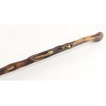 Intriguing carved walking stick with Skull and Snake. A 87cm long stick with inset bone carved snake menacingly heading towards an inset skull. A very scarce piece brought back from Normandy in France during WWII by the vendors Grandfather. A truly superb piece !