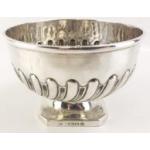 A STERLING SILVER footed bowl. Hallmarks indistinct but antique London. 11cm diameter. Weight 214g approx