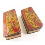 Two antique tobacco tins stuffed with old cigarette packets filled with TOBACCO CARDS. Aeroplanes, Fish, Association Football, Poultry, Aircraft of the RAF, Dandies, Motor Cars, Boy Scout & Girl Guide, Derby & Grand National Winners. Cricketers and more. Many sets appear complete.