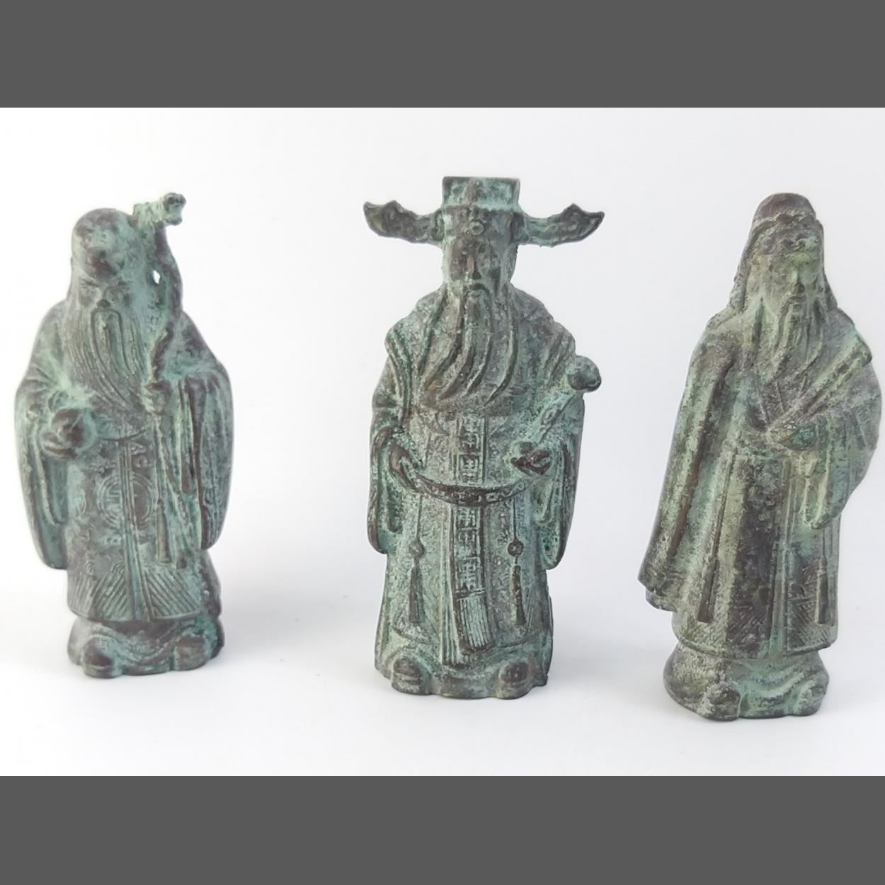 Three super lead cast Oriental wise men / gods figures, each 9cm tall. Nicely detailed.