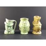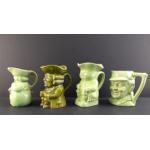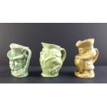 A collection of assorted TOBY & character JUGS. All in single green glazed shades. Seven wonderful pieces the largest 16cm tall.