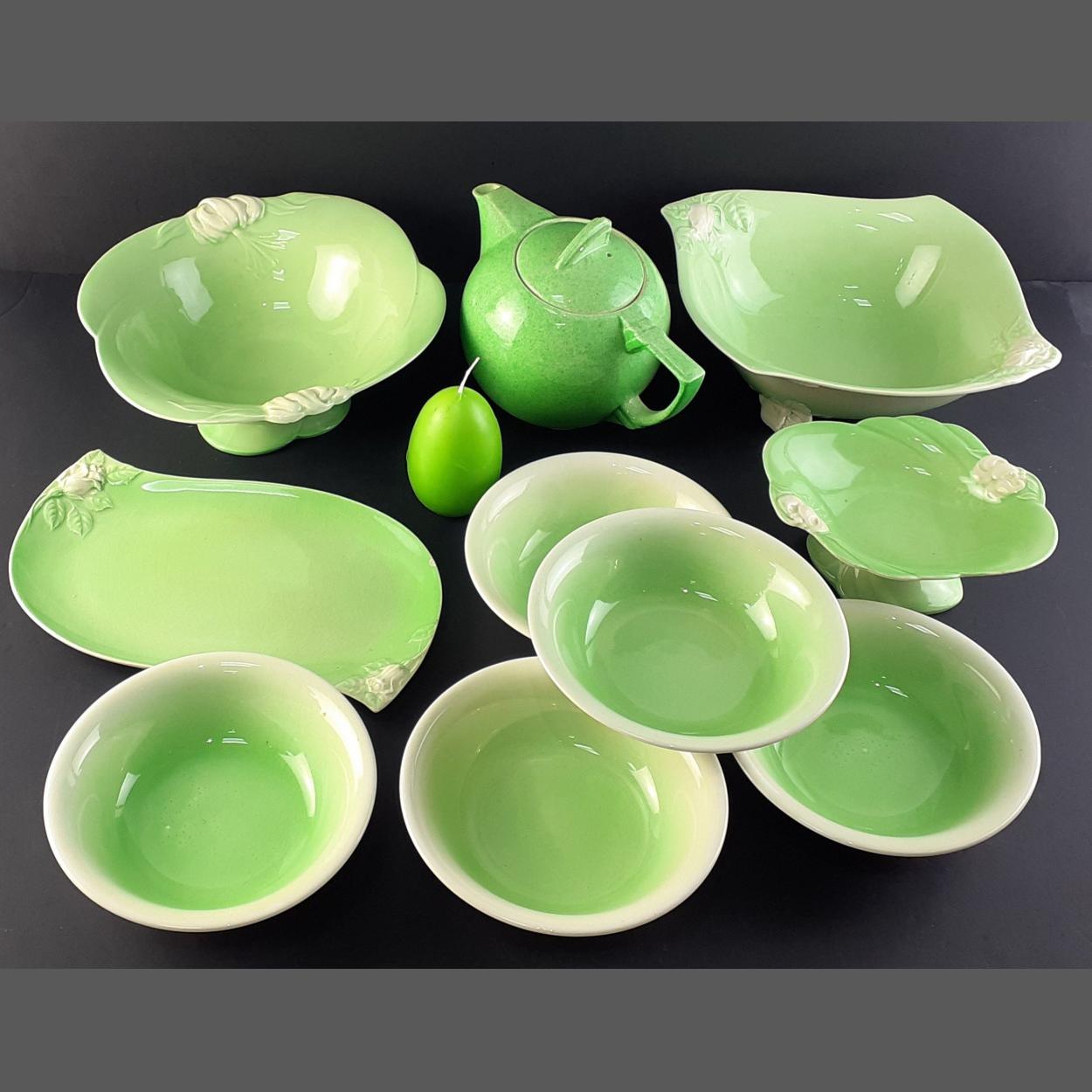ROYAL WINTON large green bowls, with Burslem classy green tea pot and other similar green items. A nice lot in good condition.