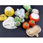 A collection of pretty condiment sets. CARLTON WARE tray with other similar. Jam pot and sifter. Some minor nibbles noted.