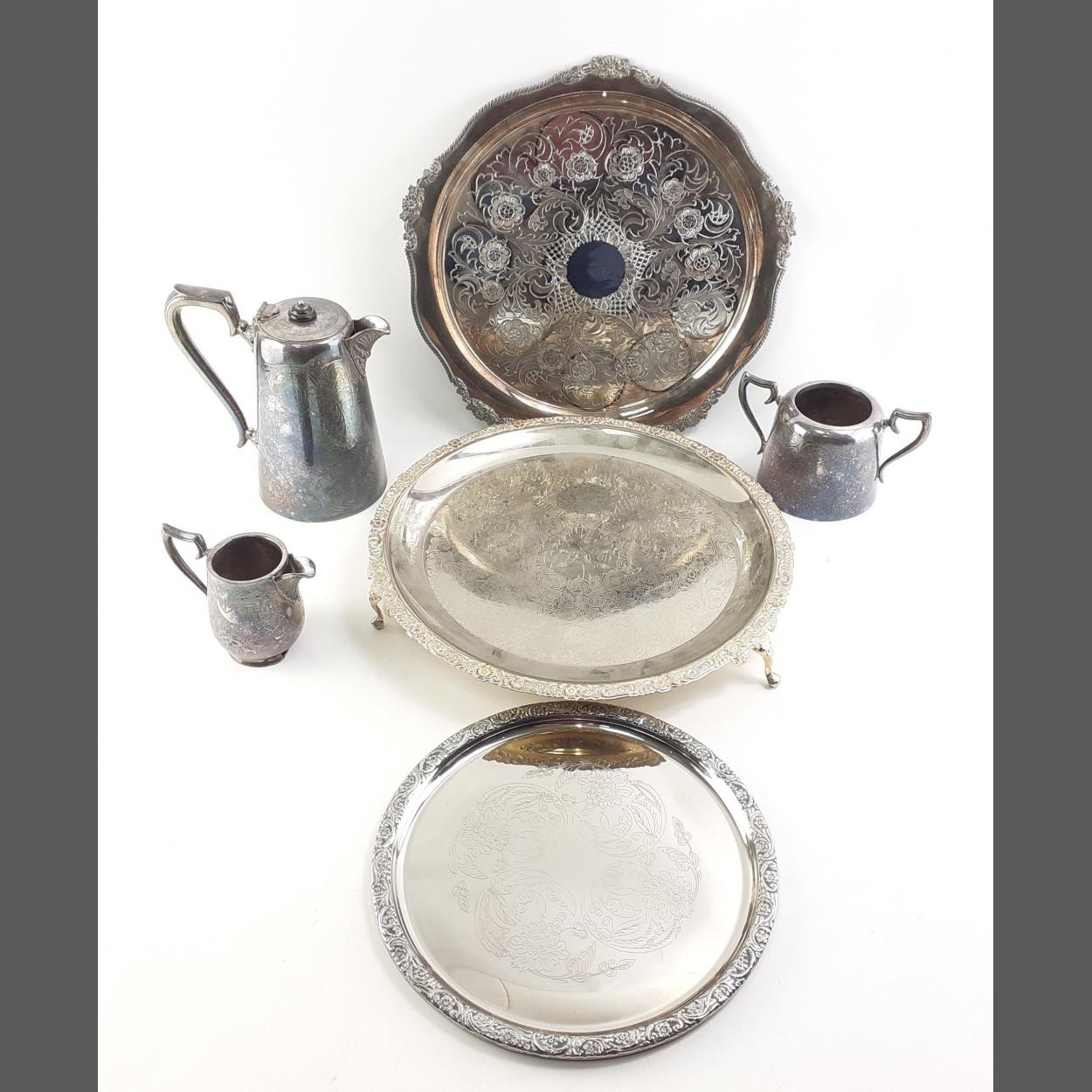 Good quality Silver Plate lot. To include Viners 35cm tray, a similar footed tray and one smaller as well as tea service. A good lot.