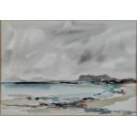 KEN LOCHHEAD (1936-2006) original watercolour in frame 'Beside Gruinard Bay'. A nice original seaside scene, frame size 53cm x 44cm approx.