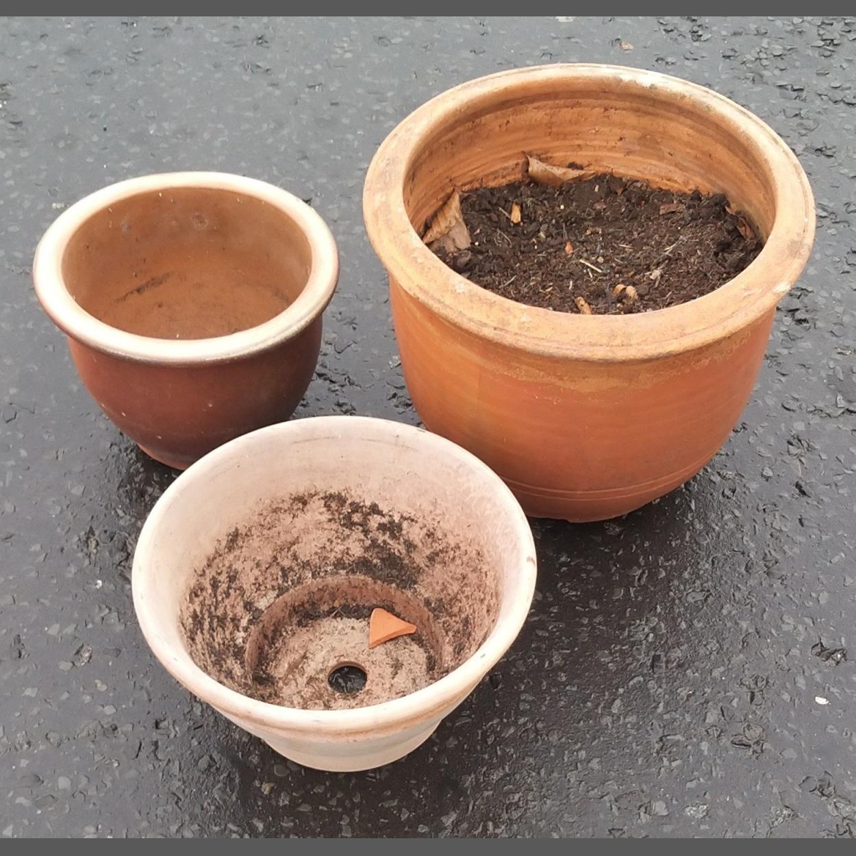 Three good useable ceramic planters. The largest 25cm tall.