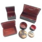 Five antique collectable RUSSIAN lacquerware trinket boxes featuring painted equine/carriage scenes - largest box dimensions 16.5cm length x 9cm depth x 5cm height approx