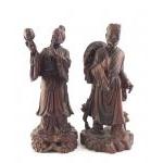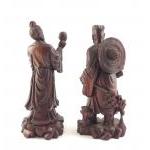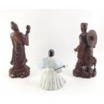 Collection of 3 oriental gentlemen figures. Two of similar design made from wood, other made from china