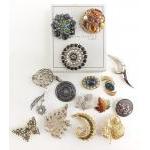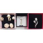 Collection of costume jewellery to include box over 10 brooches, bag of necklaces, various jewellery boxes with content including necklace and pendant set stamped "925 & 9ct bonded gold"
