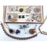 A good quality jewellery box with contents. Some very attractive brooches, earrings and other bling.