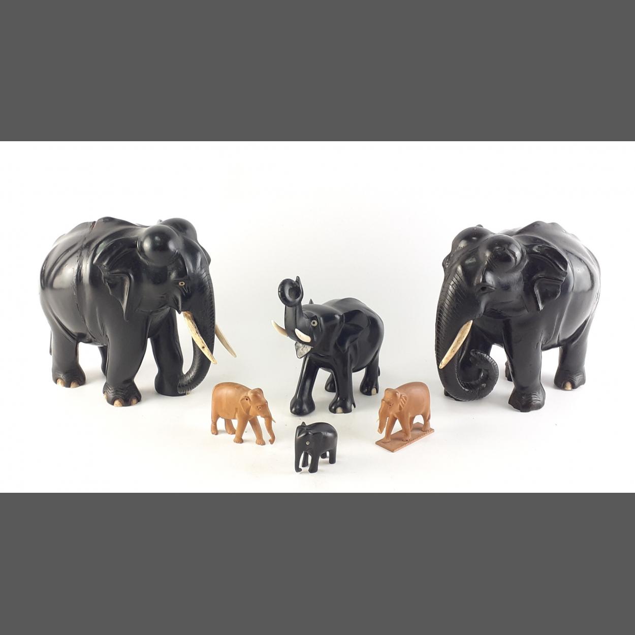 A nice group of ebony and other ELEPHANT models. The largest two standing 18cm tall. Some wear but a lovely group.