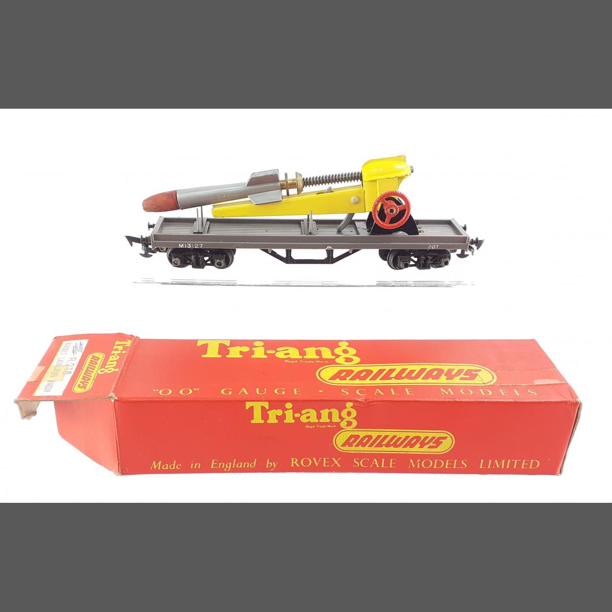 Vintage Boxed TRI-ANG Railways OO Gauge R216 Rocket Launching Wagon in very good condition in box.