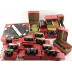HORNBY TRAINS. A super large collection of O Gauge rolling stock and layout pieces. To include No.2 turntable, No. 2 Signal Cabin, No. 2 Signal Arm, No. 1 Level Crossing, five boxed coaches, three boxed wagons, a boxed Passenger Van, boxed flat truck, No.1 Crane Truck.