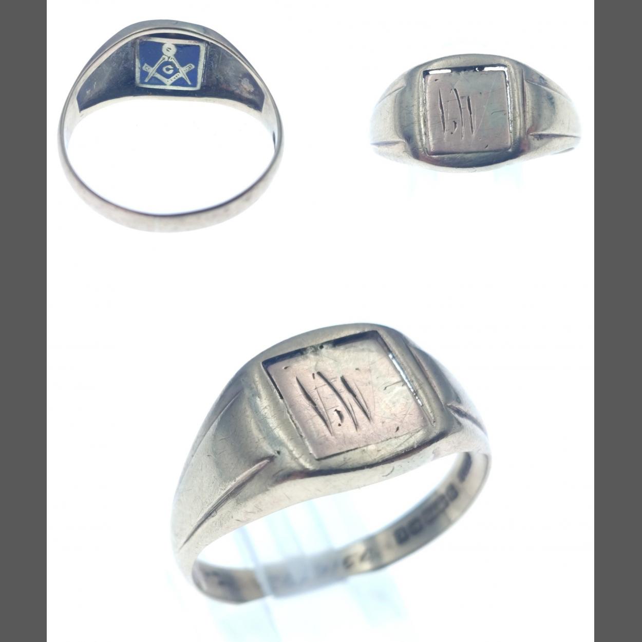 Hallmarked 375 Birmingham gents signet ring with Masonic symbol to rear. Gross weight: 4.99g approx, size Y/Z. Comes in white ring box