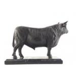 A BRONZE BULL on marble base has a small hole on front foot posibaly from sculpting measures 24cm long 17cm tall