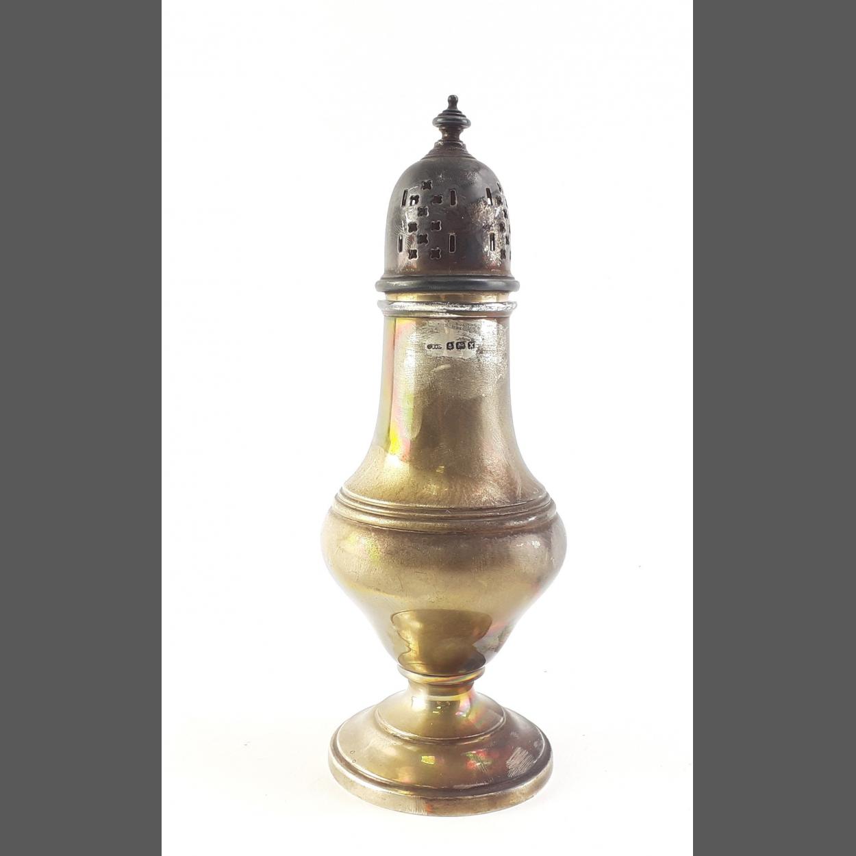 A 1972 Birmingham hallmarked sterling silver sugar caster with some patina 138.80 grams