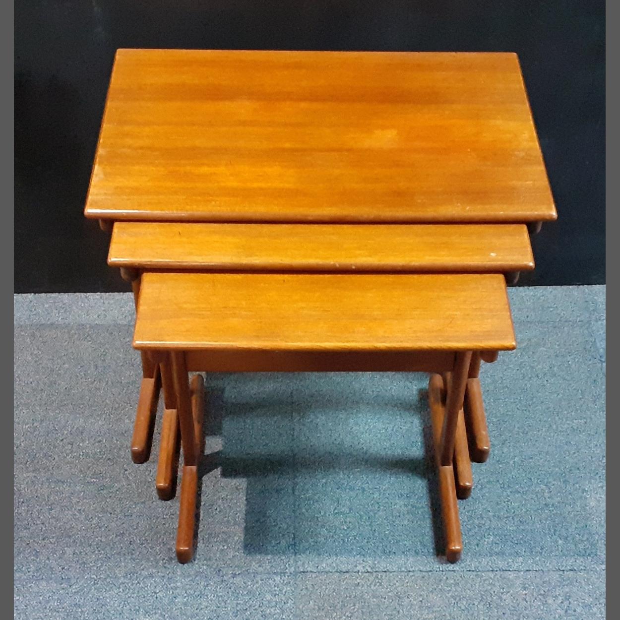 A Mid century nest of three tables with some light signs of wear overall in good condition 46cm tall 55cm wide 36cm deep