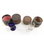 A mixed collectable decorative lot to include antique wooden and brass candle holders crumb tray and brush boxed medical glasses various ceramics, hip flask, etc