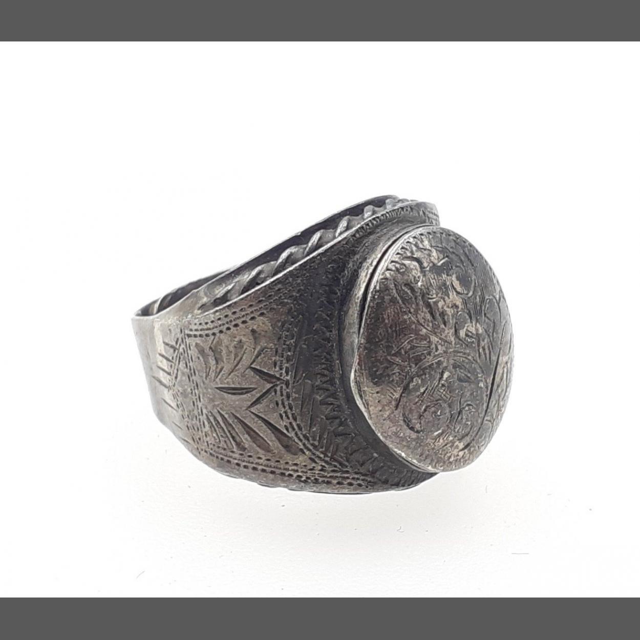 Vintage Sterling Silver pill box ring with bright cut engraving. 9.6g