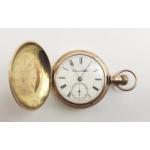 HAMPTON WATCH CO. fob watch in gilt metal finish. 43cm dial. A rather stylish piece. Missing glass but otherwise complete and appears to be running.