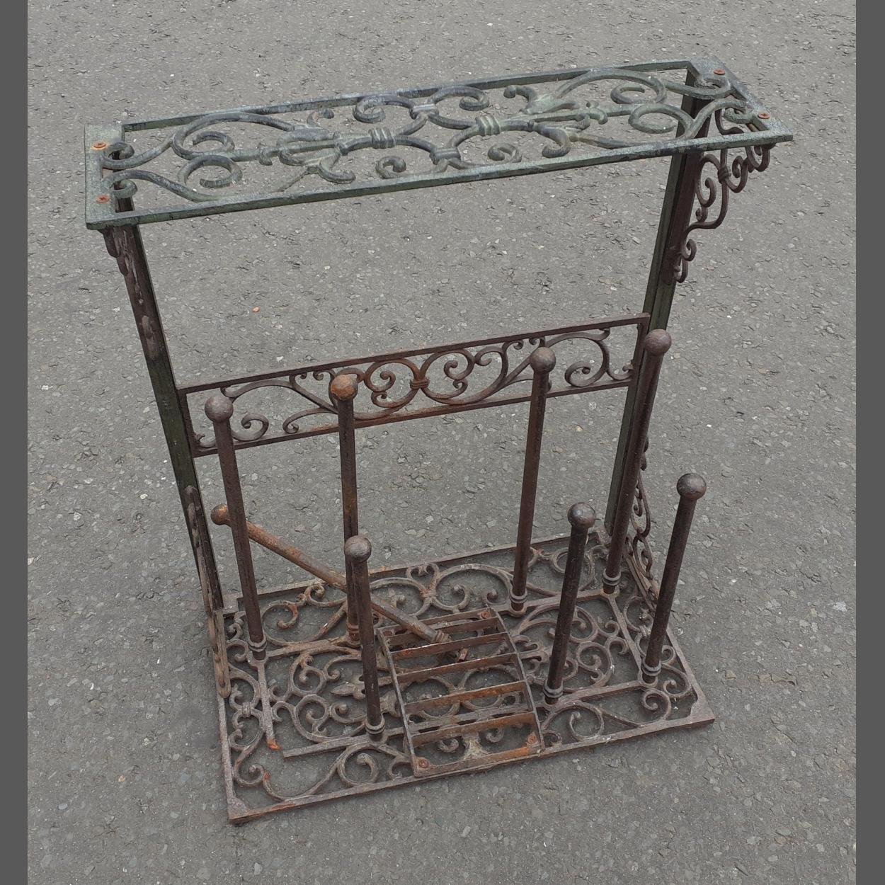 Cast Iron Boot and stick stand with wrought top shelf Reproduction piece standing 79cm tall. A stylish useful piece.