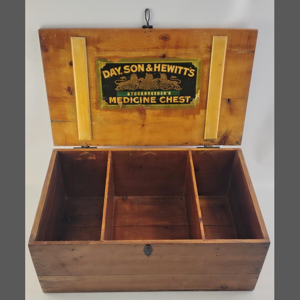 A super DAY. SON & HEWITTS Medicine Chest storage box. A super thing ready for a new life. 22cm x 56cm x 32cm and in great condition.
