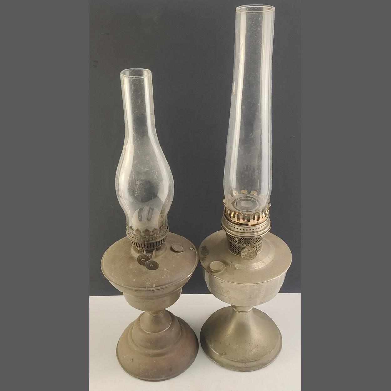 One SUPER ALADDIN oil lamp and one other similar. The smaller chimney is broken.
