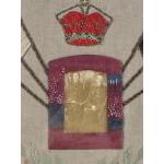 A WWI era sown cloth framed flags of the Allies with centre photo of two unnamed soldiers. 50cm x 40cm frame size.