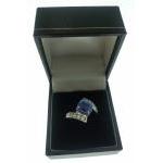 A SUBSTANTIAL 18k stamped ring with a large TOPAZ square cut stone 0.7ct approx with supporting 10 DIAMONDS (tested) ring - gross weight 7.17g approx - ring size Q