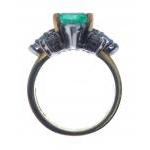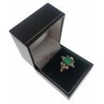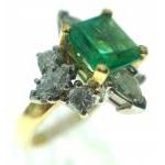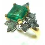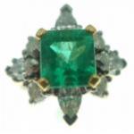 An 18ct stamped LARGE EMERALD (7mm square and 0.95ct approx) and DIAMOND(tested) floral form ring - a beautiful square-cut large emerald surrounded by 8 large petal form diamonds, - a really beautiful ring - gross weight 8.51g approx - ring size N
