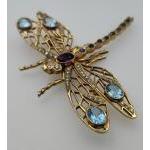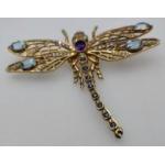 EXQUISITE DRAGONFLY brooch piece stamped 9c with DIAMONDS (tested) with also purple and blue stones most likely an AMETHYST & AQUAMARINE or LIGHT BLUE SAPPHIRES 21.15g approx
