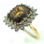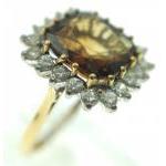 A substantial 18k stamped DIAMOND (tested) & a large square-cut SMOKEY QUARTZ central stone - ring size P - weight gross 6.56g approx