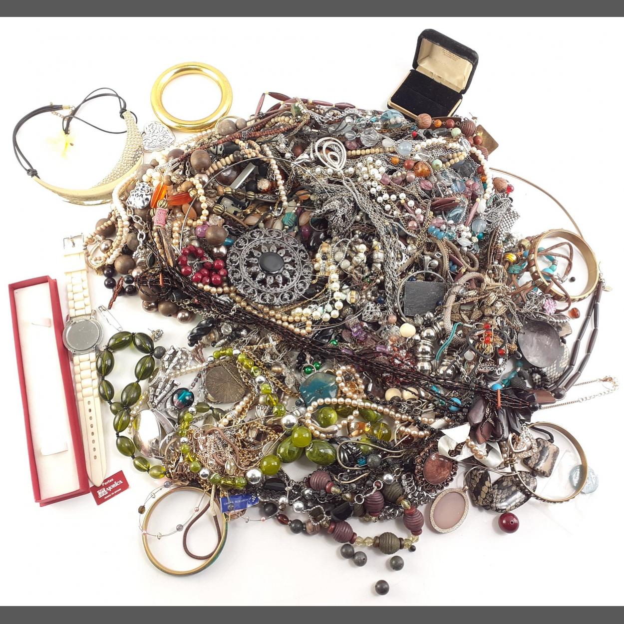 A large collection of tangled costume necklaces and jewellery bracelets etc etc