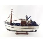 A smaller handbuilt nicely detailed wooden trawler on plinth. Measures 45cm long.