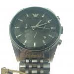 Three watches. An EMPORIO ARMANI, a BOSS and a cocktail watch. Also a Nelson Crown coin.