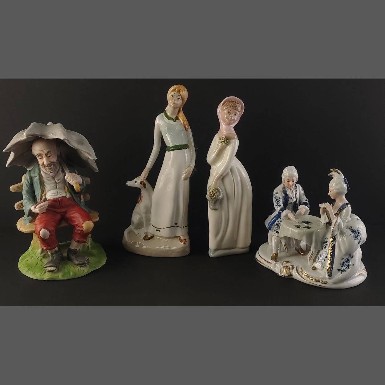 Four ornamental models, One stylish lady with Dog stamped TITO, an IVO and a Torralba Spanish lady. All in good undamaged condition.