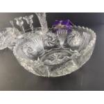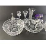 Mixed crystal lot comprising bowl, Stuart Crystal candle holders, Edinburgh Crystal paperweight. All in good condition.