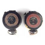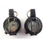 Two military marked crows foot Marching COMPASSES in good order. A GEC No. B 144190 and a T.G. Co. No. B 218412. Both in Canvass pouches. Dials good, both working well.
